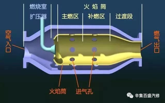 燃烧室是燃料或推进剂在其中燃烧生成高温燃气的装置,是一种用耐高温合金材料制作的燃烧设备。扩压器、燃烧室壳体、火焰筒、燃料喷嘴、点火装置构成。咱们想来看看燃烧室长什么样子。
